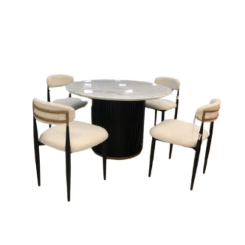 COMEDOR REDONDO CON TOP MADERA MILENIALS CON 4 SILLAS