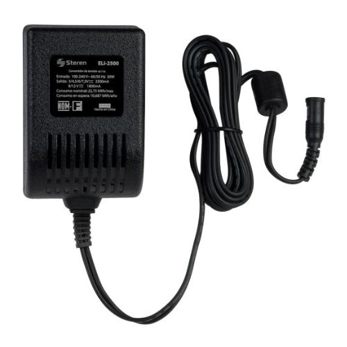 Proporciona una salida de voltaje regulada seleccionable entre 3 / 4,5 / 5 / 6 V- ͞͞͞- ͞- con hasta 2,5 A de consumo y de 9 / 12 V- ͞͞͞- ͞- con hasta 1,8 A. También, ofrece la posibilidad de cambiar la polaridad al centro, ya sea negativa o positiva. Es adecuado para aparatos electrónicos como radios, pequeñas pantallas de TV, calculadoras y juguetes. Es perfecto para reponer algún eliminador que se haya dañado o para tener uno extra. Incluye 6 puntas intercambiables, para que elijas la que mejor se adecue al aparato que quieras conectar.Incorpora clavija de dos navajas y está fabricado con plástico resistente a impactos.