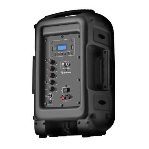 Entrada AUX RCA Entrada 6.3 mm para micrófono o instrumento musical Reproduce USB y microSD Controles independientes para el volumen general y micrófono Crossover para ajustar de manera independiente medios y graves Tiene Efecto ECO para que tu voz se escuche como profesional Batería recargable hasta 6 horas de uso Bornes para conexión de batería de auto