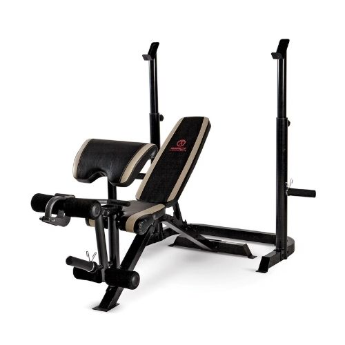Cuenta con un banco de uso independiente y barras de sujeción para una experiencia de entrenamiento corporal total. Puedes usar el banco para hacer las rutinas de inclinación, declive o alejarlo para realizar sentadillas. El banco presenta un desarrollador muy completo para ejercicios de pierna y un predicador curvo con almohadilla. El banco es muy versátil y multiuso, pudiendo obtener tener hasta 5 posiciones. Para los entrenamientos del cuerpo inferior, está equipado con un desarrollador total de la pierna para isquiotibiales, cuádriceps y glúteos con almohadillas de rodillo de espuma contorneadas para ayudar en el entrenamiento adecuado de las piernas. Con el predicador podrás tonificar y trabajar tus bíceps. Tiene posiciones ajustables para un entrenamiento adecuado y cómodo de tus brazos. Soportes independientes de altura ajustable y desmontables con cerradura de perilla. El diseño de 2 piezas permite sentadillas y ejercicios de embestida.