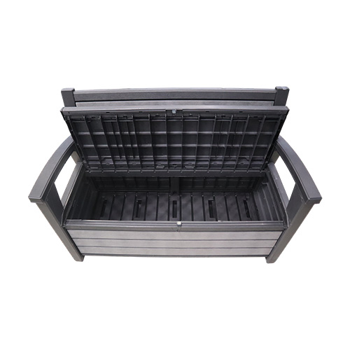 Banca Keter color grafito, ideal para almacenar cosas en su espacio debajo del asiento. Modelo DT-KTR-17204490-233781.