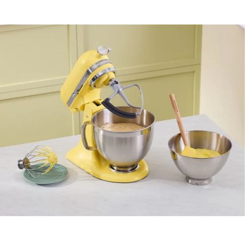 Batidor plano con borde flexible, batidor de 6 alambres, gancho para amasar, batidor de pasteleria con raspador, y tazon de trabajo de 3 qts