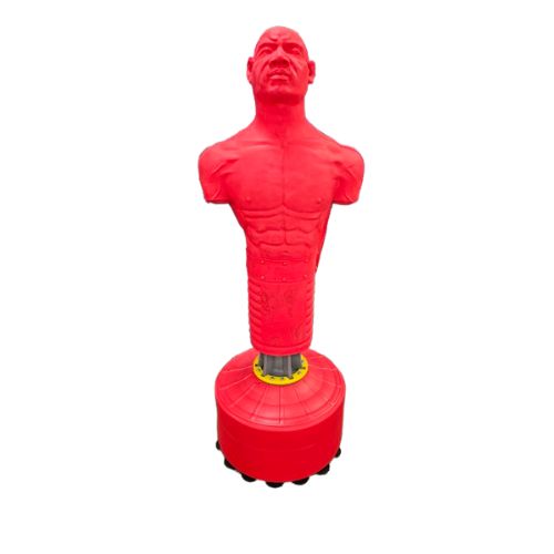El maniquí de boxeo independiente es ideal para entrenar en interiores y exteriores. A diferencia de los sacos de boxeo tradicionales, este maniquí de entrenamiento no necesita estar fijo y se puede mover fácilmente a donde necesites entrenar. Diseñado con características realistas que replican la sensación y el impacto de diferentes áreas del cuerpo, ofreciéndote una herramienta de golpeo más precisa. La base de gran capacidad se puede llenar con agua o arena, y la potente ventosa proporciona mayor estabilidad. Medidas: Altura: 173 cm, ancho del pecho: 65 cm y ancho de torso: 30cm