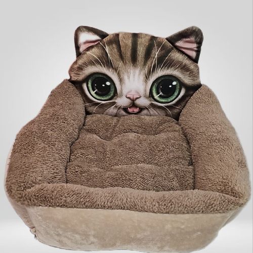 Respaldo elevado con un tierno diseño de cara de gato y ojos grandes que brinda una sensación de protección y seguridad a tu mascota. Fabricada con felpa suave y vello polar de alta calidad, ideal para mantener el calor corporal en días fríos.Sus bordes acolchados permiten que tu perro o gato apoye la cabeza, reduciendo la ansiedad y mejorando la calidad del sueño. Ideal para gatos de todos los tamaños y perros de razas pequeñas.