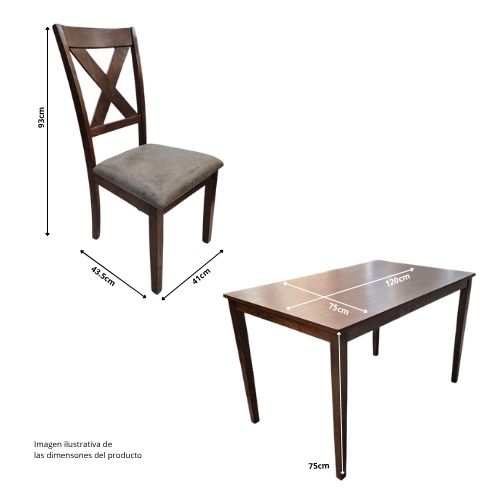 Este impresionante juego incluye sillas de comedor con un elegante respaldo en forma de X que no solo mejora la comodidad, sino que también añade un toque de sofisticación a su comedor. Cada silla cuenta con un cojín acolchado relleno de espuma, lo que garantiza una experiencia gastronómica confortable. Ideal para reuniones pequeñas, este juego de comedor tiene capacidad para 4 personas, lo que lo hace perfecto para comidas íntimas o cenas informales. Dimensiones de la mesa: 75cm alto x 75cm ancho x 120cm largo – Sillas: 93cm alto total x 41cm ancho x 43.5cm profundidad.