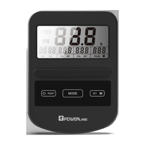 Pantalla LCD: Tiempo, velocidad, distancia, calorias, pulsación por minuto y RPM (Revolución por minuto) – Sistema de transmisión: correa – Sistema de frenos: magnético – Intensidad del entrenamiento: 10 niveles manuales – Ruedas de transporte.