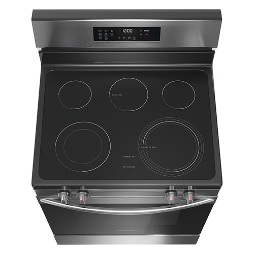 Horneado por convección: Obtenga resultados de horneado más rápidos y uniformes con nuestro sistema de horneado por convección con ventilador. Estufa de cinco elementos: Diseñado para satisfacer todas sus necesidades de cocina con un potente elemento EvenTemp® de 3200 vatios, un elemento expandible doble y una conveniente zona para mantener caliente. Horno autolimpiante: Cuenta con un conveniente ciclo de autolimpieza de 3 horas que reduce la necesidad de fregar, lo que facilita mantener limpio el horno. Elemento EvenTemp®: El calor se distribuye uniformemente por la superficie del elemento, lo que reduce los puntos calientes y las áreas frías en la sartén.