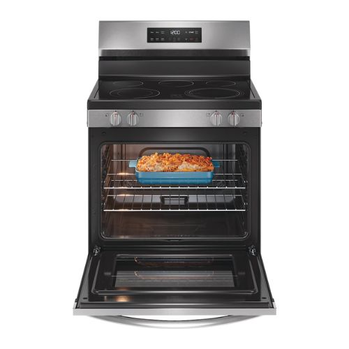 El calor se distribuye uniformemente por toda la superficie del elemento, lo que reduce los puntos calientes y las áreas frías en la sartén. Diseñado para satisfacer todas sus necesidades de cocina con un potente elemento EvenTemp® de 3200 vatios, un elemento expandible doble y una conveniente zona para mantener el calor. Diseñado para ofrecer resultados de horneado uniformes en todo momento con una limpieza de horno ligera, sin químicos, sin olores y rápida, que dura 30 minutos.
