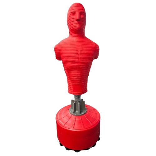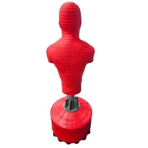 El maniquí de boxeo independiente es ideal para entrenar en interiores y exteriores. A diferencia de los sacos de boxeo tradicionales, este maniquí de entrenamiento no necesita estar fijo y se puede mover fácilmente a donde necesites entrenar. Diseñado con características realistas que replican la sensación y el impacto de diferentes áreas del cuerpo, ofreciéndote una herramienta de golpeo más precisa. Base plástica de gran capacidad, se puede llenar con agua o arena, y la potentes ventosas proporcionan mayor estabilidad. Se recomienda llenar la base en el lugar exacto donde se va a utilizar, ya que una vez llena es muy difícil de trasladar. Altura: 160 cm – Base: 60×60