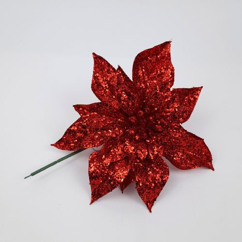 Pascua decorativa artificial roja con brillantina. NO APLICA DEVOLUCIÓN.