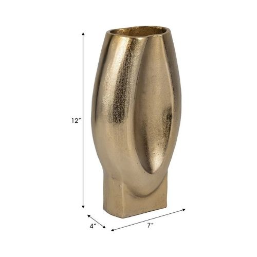 Jarrón ovalado de metal de 12plg, color dorado