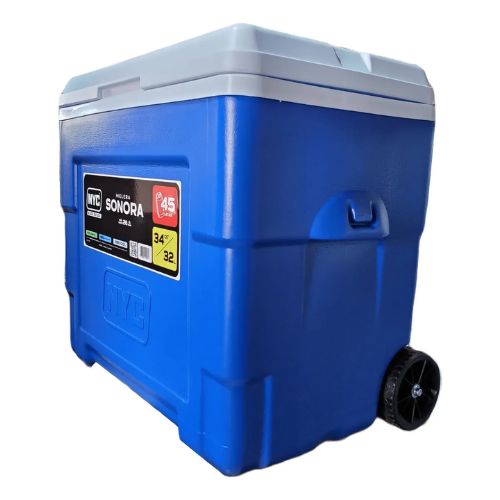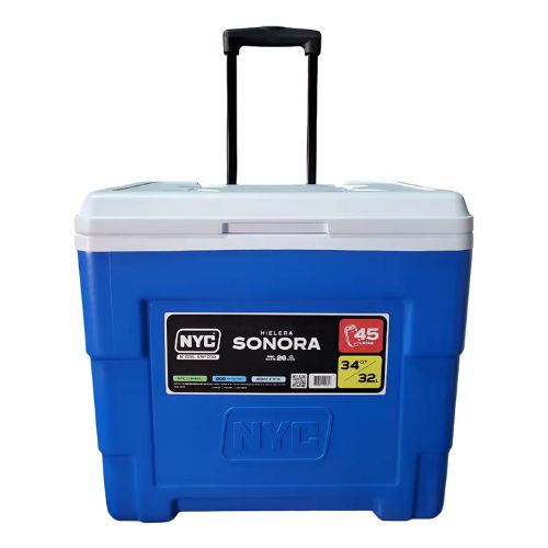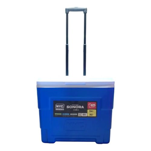 Facilita el traslado de tus bebidas y alimentos con capacidad de 34 litros (45 latas) ideal para tus viajes en familia o día de campo, incluye ruedas todo terreno, asa telescópica y su temperatura interna puede mantenerse hasta 26 horas.