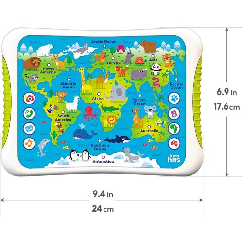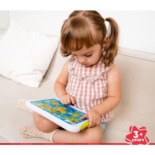 Contenido educativo: Los niños aprenden datos interesantes sobre los animales, los continentes y los océanos. 33 sonidos de animales: Los sonidos realistas deleitarán a los más pequeños y les ayudarán a reconocer diferentes especies. 45 datos informativos: Aumenta el conocimiento de los niños sobre la naturaleza y la geografía. 31 melodías y sonidos: Las canciones y sonidos alegres proporcionan diversión adicional y estimulan la imaginación. Cuestionarios interactivos: Las tareas y preguntas divertidas involucran aún más a los niños en el proceso de aprendizaje. Diseño colorido: la apariencia atractiva de la tableta y su fácil manejo se adaptan a manos pequeñas. Formato práctico: ideal para uso doméstico, pero también para entretenimiento en movimiento.