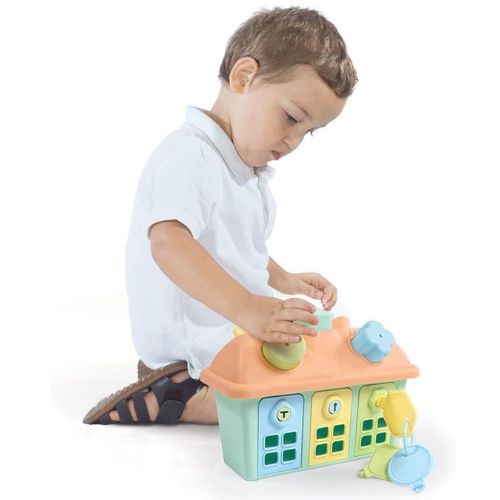 Cuenta con 5 formas geométricas diferentes en un cubo. Hay 5 bloques geométricos de diferentes colores en el cubo. Es un producto para que los niños aprendan formas geométricas. El cubo es ligero