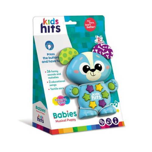 Con el Cachorro Musical Bebés, el niño aprende el abecedario y a contar con divertidos ejercicios. Divertidos sonidos y melodías fomentan su interés por la música y lo animan a cantar y bailar con alegres canciones. ¡Comienza una gran aventura musical! 26 divertidos sonidos y melodías, 2 canciones educativas griegas, juego interactivo, paneles táctiles, luces de colores, abecedario y números, divertidos ejercicios de fitness. Pilas incluidas para uso de prueba.