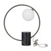 La lámpara de mesa presenta una construcción robusta de mármol, vidrio, plástico y hierro. La lámpara de acento tiene un acabado brillante en su soporte de mármol negro y anillo de metal junto con una bombilla blanca mate.