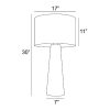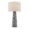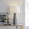 Base de metal con acabado en mármol gris y blanco. Pantalla de tela blanca Interruptor de encendido/apagado en el cable Admite una bombilla tipo A de 100W, no incluida.