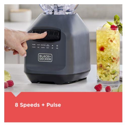 La licuadora BLACK+DECKER® Ice Crush ofrece un rendimiento potente para triturar hielo a la perfección y triturar incluso los ingredientes más duros con facilidad. Sus seis cuchillas un 30 % más grandes con puntas de acero inoxidable de larga duración funcionan en todos los ángulos para hacer puré de sopas, triturar hielo para batidos y mezclar salsas en segundos. Tapa de doble apertura con ranura para ingredientes con bisagra: agregue ingredientes adicionales mientras licúa. Limpieza rápida y sencilla: el frasco PerfectPour™, la tapa de doble apertura y las seis cuchillas un 30 % más grandes son aptas para lavavajillas. Gran capacidad: el frasco PerfectPour™ de 7 tazas (56 oz) le permite preparar múltiples porciones en una sola mezcla.