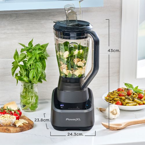Jarra de Tritán de 2 litros de capacidad Tecnología Silenciosa para una experiencia de licuado más agradable Potentes cuchillas turbo de 6 puntas Capacidad de jarra personal de 700 ml Piezas aptas para lavavajillas. Potencia máxima profesional de 1,500 watts
