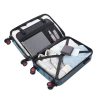 Cuenta con cuatro ruedas con sistema 360 para un movimiento fluido, una manija telescópica ajustable para un mejor transporte por cualquier aeropuerto y un sistema TSA para mayor seguridad. Cubierta rígida de alta resistencia a impactos.