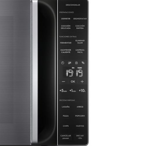 El innovador panel inteligente ofrece 4 funciones diferentes para facilitar tus preparaciones diarias: Derretir, Deshidratar, Cocción delicada y Cocción rápida. Descongelación asistida. Acelera el proceso de fermentación. Garantiza que tu comida se mantenga caliente hasta que estés listo para disfrutarla. El sistema de recirculación de aire interior atenúa los olores residuales de platos anteriores y mantiene el microondas siempre listo para la siguiente comida. 6 recetas – Papas, Lasaña, Arroz, Pizza, Palomitas o Huevos – para hacer tu día a día más fácil con un solo toque. Modo ECO, la luz del panel se apagará cuando el microondas no esté en uso. Practica la limpieza.