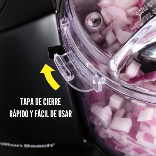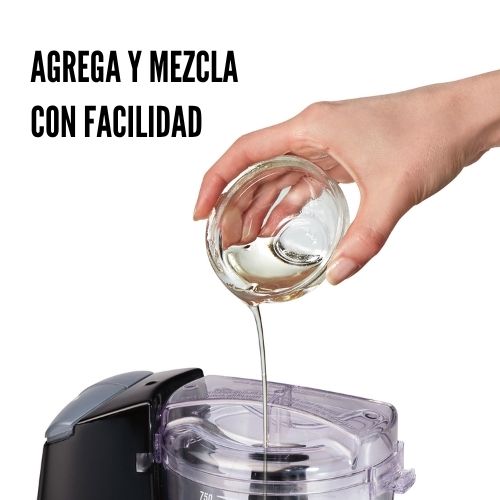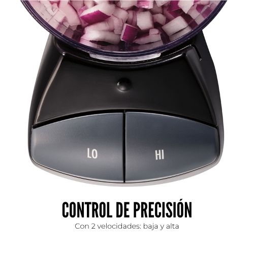 Disfruta de un control preciso con dos velocidades para elegir, logrando la textura perfecta en cada ocasión, ya sea que prefieras salsas suaves o trozos de cebolla y pimientos en tu salsa. Sus cuchillas de acero inoxidable cortan eficazmente todo tipo de ingredientes, desde zanahorias y cebollas hasta ajo y frutos secos. Pica, mezcla y tritura sin esfuerzo, todo en un solo aparato. La tapa de cierre rápido es fácil y rápida de usar. Mantiene los ingredientes dentro del recipiente, evitando derrames y manchas en la encimera. Gracias al dispensador de aceite integrado en la tapa, añadir aceite y otros líquidos para emulsionar al preparar pesto fresco, aderezos para ensaladas y salsas es muy sencillo. El recipiente, la tapa y las cuchillas extraíbles son aptos para lavavajillas.