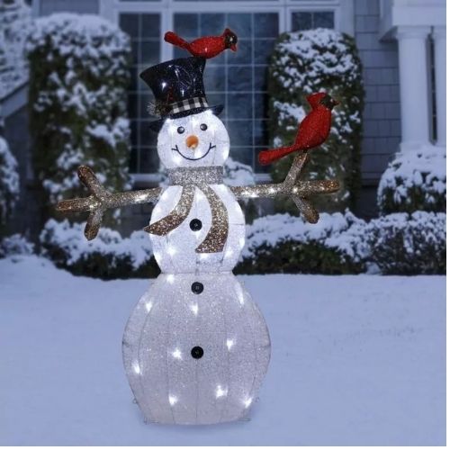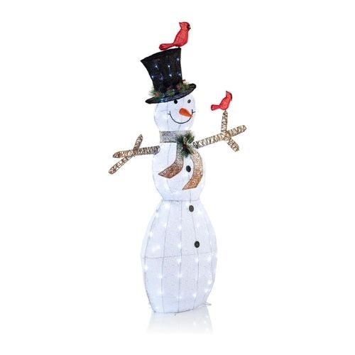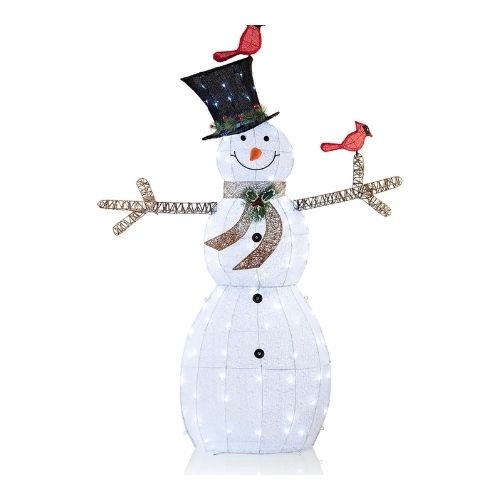 Decoración de césped de muñeco de nieve de 74 de alto: la estatua de muñeco de nieve de malla blanca con pájaros decorativos es perfecta para difundir alegría navideña en tu patio. Cuenta con 100 luces LED blancas frías para proporcionar un brillo suave a tu espacio de vacaciones. Duradero y duradero: hábilmente fabricado con materiales duraderos para proporcionar un uso duradero para interminables temporadas de vacaciones