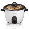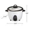 Los controles simples de un solo toque facilitan la cocción de arroz, cereales calientes, sopas, verduras al vapor y más. Prepare comidas para toda la familia con la gran capacidad de 16 tazas. Versátil y eficiente: cocina al vapor perfectamente las verduras mientras cocinas el arroz. La cesta vaporera también funciona como enjuagadora de arroz para permitirle eliminar los almidones del arroz y mejorar su textura. Fácil de limpiar