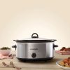 La cocción lenta en su olla de cocción lenta Crock-Pot® le ofrece la flexibilidad de preparar una comida con anticipación y dejarla cocinando durante todo el día. Puede realizar todas sus actividades del día y disfrutar de una comida casera y nutritiva por la noche. Es una forma más saludable, económica y práctica de servir comidas sabrosas y saciantes. Esta olla de cocción lenta manual Crock-Pot® cocina en los niveles ALTO o BAJO, y el nivel CALIENTE permite mantener su plato a la temperatura ideal para servir. Configuración CALIENTE conveniente Gres ovalado extraíble Tapa de cerámica y vidrio apta para lavavajillas Exterior de acero inoxidable con detalles en negro y asas de plástico.