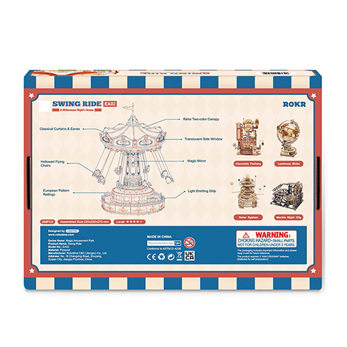 Parque de atracciones, paseo en columpio con colores rojo, blanco y frescos clásicos, cortinas elegantes, las sillas voladoras del columpio giran con un toque de romance – Luz cálida y fluida: Añade más efectos dinámicos para el modelo – Pabellón retro: 2 colores alternativos de rojo y blanco – Hoja de espejo: Refleja la silla voladora y aporta un toque de elegancia – Silla exquisita: Diseñado con recortes y 2 colores – Interruptor táctil: Toque ligeramente para cambiar entre diferentes modos – Ventana lateral translúcida: Deja pasar la luz cálida.