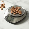 Elegante báscula digital de cocina con una plataforma de acero inoxidable que da un toque moderno y elevado a cualquier cocina. El diseño delgado permite un almacenamiento compacto, perfecto para una cocina pequeña o cajones y armarios estrechos de cocina. la pantalla LCD muestra el peso (libras, gramos y oz) y el volumen (fl. oz y ml) en unidades de medida estándar y métricas. Hay dos modos de volumen disponibles para pesar agua y leche. La gran pantalla LCD muestra números fáciles de leer para mayor precisión y visibilidad.