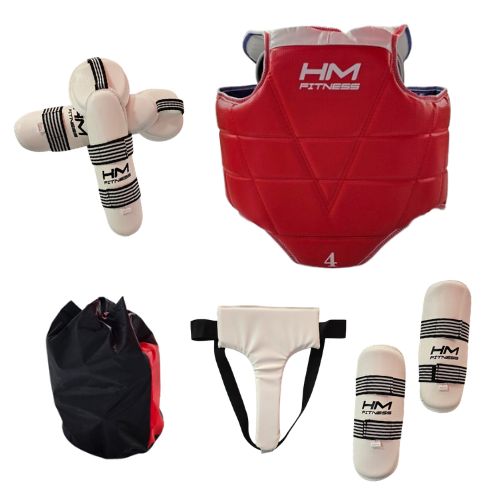 Protector corporal para entrenamiento y competición. Fabricado con materiales de alta calidad, este protector corporal cuenta con acolchado grueso y protectores de hombro para proporcionar una protección completa. Uso de doble cara, un lado azul y un lado rojo, fácil de usar. Ideal para entusiastas del taekwondo, practicantes y atletas profesionales que buscan equipo práctico para su viaje artístico. Este práctico protector de pecho garantiza un ajuste seguro con sus cordones, lo que permite un movimiento lleno de movimiento. El protector de pecho está diseñado para absorber impactos, mantenerte centrado en perfeccionar tu habilidad y lograr el triunfo. Guia de tallas (peto: 45x89cm) – (Espinillera: 38.5x9cm) -(Protector de brazo: 30.5x11cm) – (Protector inguinal 29cm)