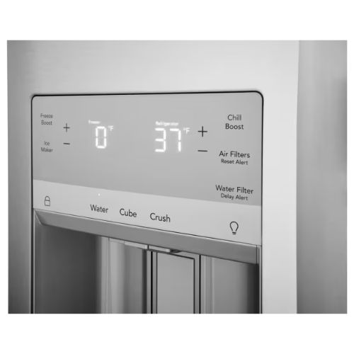 Cuenta con una impresionante capacidad de almacenamiento interior que puede albergar fácilmente hasta 35 bolsas de la compra. Tecnología Crisper de primera clase: La lechuga y el brócoli se mantienen frescos y crujientes por más tiempo en nuestros cajones para verduras gracias a 3 tecnologías avanzadas. Sistema de organización SpaceWise: Encuentra un lugar para cada cosa con nuestras soluciones de organización flexibles que maximizan el espacio útil y se adaptan a las necesidades de tu familia. Cajón de temperatura Custom-Flex: Personaliza tu espacio para todos tus artículos de uso más frecuente. Guarda yogur, bebidas o pizzas congeladas en el cajón central convertible que puede funcionar como refrigerador o congelador. Filtro de agua PurePour Connect: Mantén un flujo constante de agua más segura y de excelente sabor, y reduce hasta un 99 % de los contaminantes, a la vez que disminuyes el consumo de plástico y el costo del agua embotellada con nuestro filtro de agua. Acero inoxidable a prueba de manchas: Resistente a las huellas dactilares y fácil de limpiar. Filtro de aire PureAir AF-2: Funciona mejor que el bicarbonato de sodio, capturando los olores desagradables para mantener tu refrigerador fresco por más tiempo.