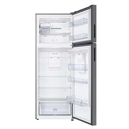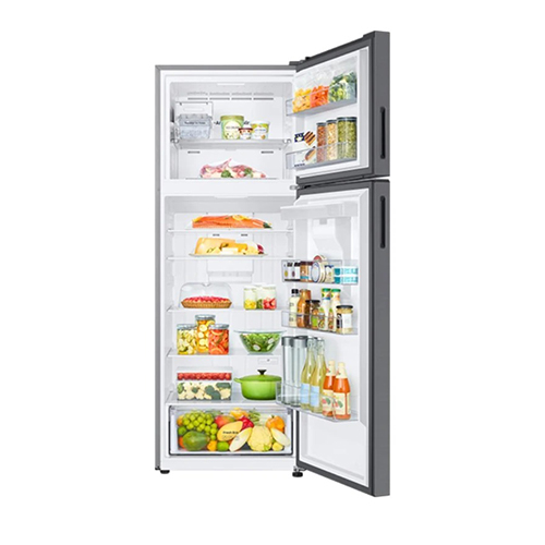 Reduce tu consumo de energía hasta en un 10% con AI Energy Mode en SmartThings Energy. Si tu cuenta de electricidad mensual estimada excede tu objetivo preestablecido, te da la opción de ahorrar energía. Optimiza la velocidad del compresor y el ciclo de descongelamiento, según tu patrón de uso y entorno – Asegúrese de que los alimentos se mantengan frescos el doble de tiempo. El cajón Optimal Fresh+ te permite cambiar entre cuatro modos para guardar diferentes alimentos. En el modo “Congelamiento suave”, preserva la frescura de los alimentos delicados, como la carne y el pescado, el doble de tiempo que el enfriamiento normal y conserva su sabor natural – Da a tu hogar un aspecto elegante y moderno. El diseño pulcro y contemporáneo cuenta con puertas planas sorprendentemente hermosas con una decoración plateada de primera calidad alrededor del borde y manijas empotradas que no sobresalen. Así que encajará perfectamente con los electrodomésticos de cocina y mejorará el aspecto de tu hogar – Guarda los artículos grandes y voluminosos de manera mucho más efectiva y minimiza el espacio desperdiciado en el refrigerador. Un estante plegable se desliza hacia adentro y hacia afuera para que puedas guardar botellas y contenedores altos, como un pastel de varios niveles o una olla multifunción. Para que puedas guardar de manera segura y eficiente artículos de todas las formas y tamaños – Disfruta de una gran eficiencia energética, poco ruido y rendimiento duradero. El compresor Digital Inverter ajusta automáticamente su velocidad en respuesta a la demanda de refrigeración. Es silencioso, utiliza la energía de manera eficiente y sigue funcionando mucho tiempo – Disfruta de un rendimiento de enfriamiento rápido para enfriar alimentos y bebidas rápidamente. Con solo tocar un botón, Power Cool sopla aire intensamente frío en el refrigerador. Puedes enfriar rápidamente tus comestibles semanales para asegurar su frescura y sabor o enfriar rápidamente tus bebidas favoritas para una fiesta o cena – Lleva el almacenamiento de alimentos a un nuevo nivel de enfriamiento optimizado y preserva la frescura de manera efectiva. La refrigeración integral avanzada controla continuamente la temperatura y hace circular el aire frío a través de respiraderos ubicados estratégicamente. Por lo tanto, cada artículo en cada estante y en cada caja se mantiene a la temperatura óptima.