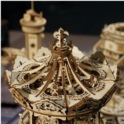 El carrusel romántico ROKR AMK62 es una caja de música mecánica con forma de tiovivo. Representa un mecanismo de tiovivo real. Con una decoración y una afinación románticas, te divertirás mucho durante y después de construirlo. Un tiovivo es una especie de juego de motor de parque de atracciones; los asientos están decorados como caballos de Troya que se mueven hacia arriba y hacia abajo en la plataforma giratoria de gran tamaño para los turistas. Los ponis tienen diferentes formas y movimientos vívidos.