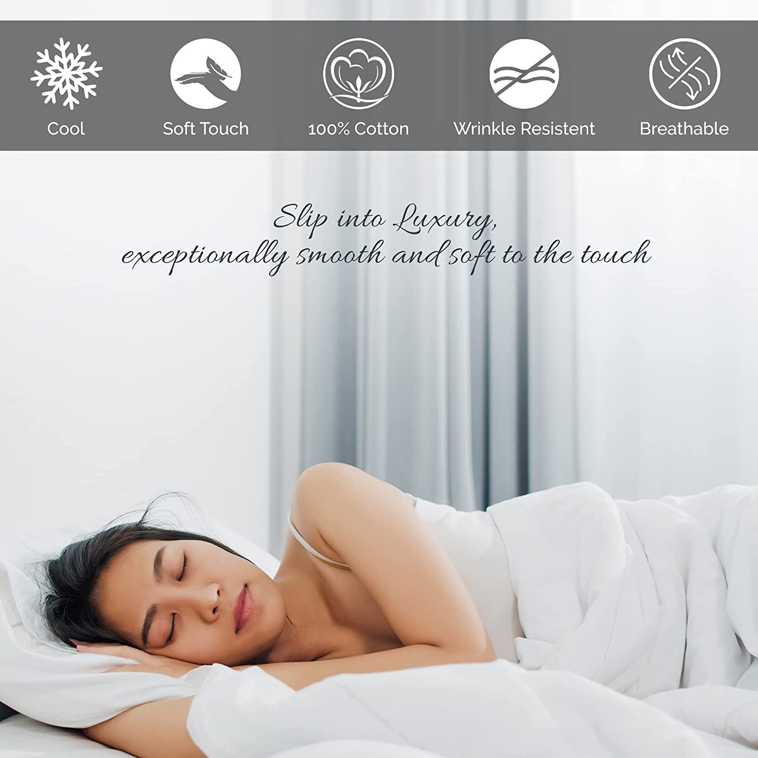Tecnología Flexifit; los exclusivos paneles de spandex garantizan un ajuste perfecto para colchones de espuma gruesa y con la parte superior acolchada. La parte superior e inferior de la sábana bajera son fáciles de identificar. El acabado de tela especial Eversmooth une polímeros resistentes a las arrugas a 100% algodón para garantizar un cuidado fácil a largo plazo. También reduce el encogimiento asegurando un ajuste perfecto lavado tras lavado. El sobre europeo envuelve elegantemente tu almohada. Seca rápido ahorrando tiempo y energía. Lavable a máquina y apto para secadora.