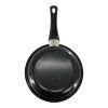 Construcción duradera de acero al carbono. Revestimiento interior antiadherente. Mango de baquelita con agujero para colgar. Doble remachado. Lavar a mano solamente.