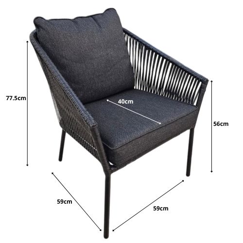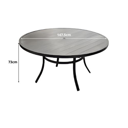 El set incluye: 6 sillas y 1 mesa de comedor. Dimensiones. Mesa: 147.5cm circunferencia x 73cm. alto – Sillas: 77.5cm alto x 59cm ancho x 59cm largo