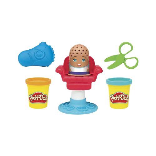 Play-Doh Barber, el clásico y atemporal set de juego, ahora disponible en un práctico tamaño mini para divertirse. ¡Diversión portátil para llevar a todas partes! Deja que tu cabello crezca y crea peinados alocados para tu cliente con la ayuda de la silla de barbero, tijeras y cuchillas de afeitar aptas para niños, y 2 frascos de plastificante Play-Doh no tóxico.