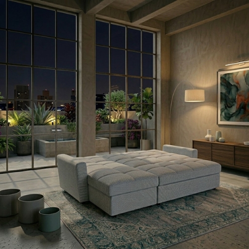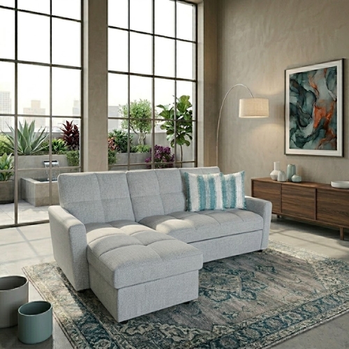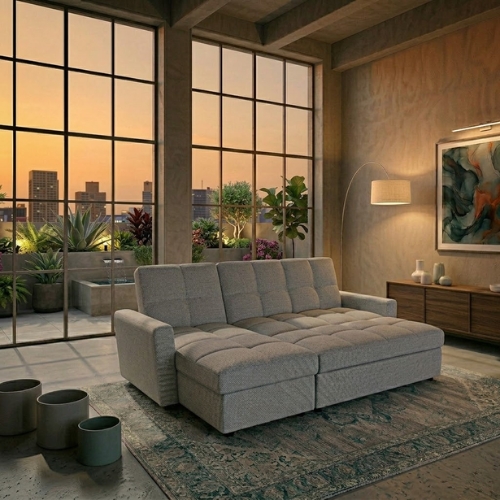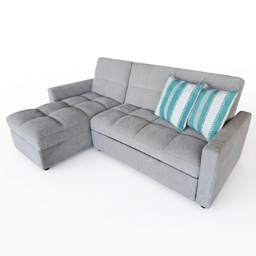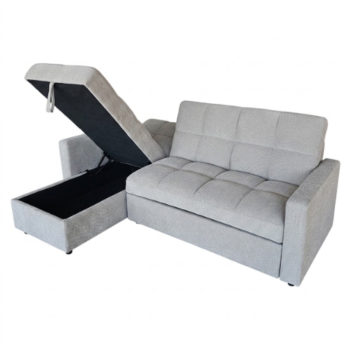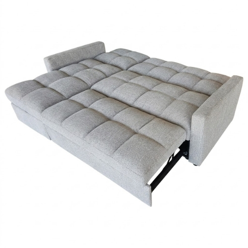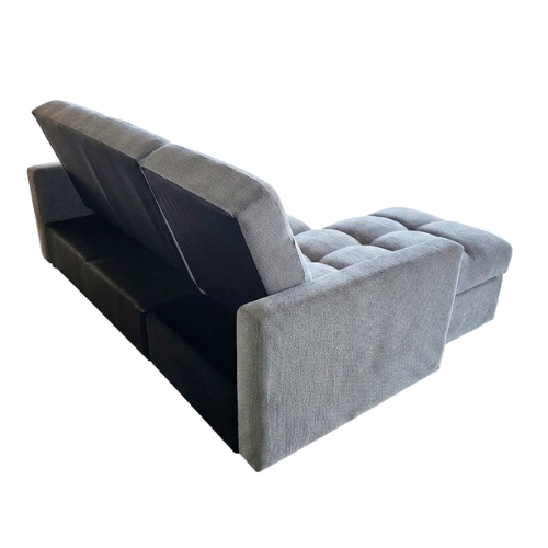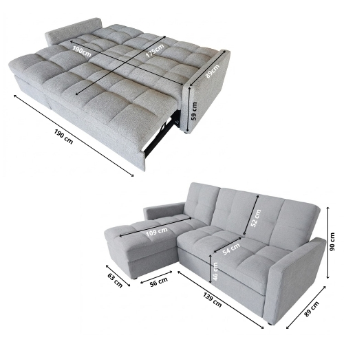 Sofá cama de 3 plazas con asiento retráctil y reclinable. Construido con una estructura de madera y metal para garantizar la resistencia y durabilidad del mueble. La tapicería ofrece un excelente estilo y comodidad. Diseñado para ser fácil de abrir y cerrar, permitiendo una transición suave entre sus diferentes funciones sin complicaciones. Cuenta con correas de mano auxiliares para convertir fácil y rápidamente el sofá biplaza en una suave cama para dormir. Integra además un baúl de almacenamiento, ideal para mantener organizados cojines, ropa de cama u otros artículos, optimizando el espacio. Este sofá cama cuenta con mullidos cojines y un diseño ergonómico que prometen una experiencia de descanso y sueño confortable, invitándote a relajarte y recargar energías. Dimensiones. Función sofa: 90cm altura total x 190cm ancho x 89cm profundidad – Función sofá cama: 46cm alto x 190cm ancho x 175cm largo
