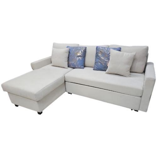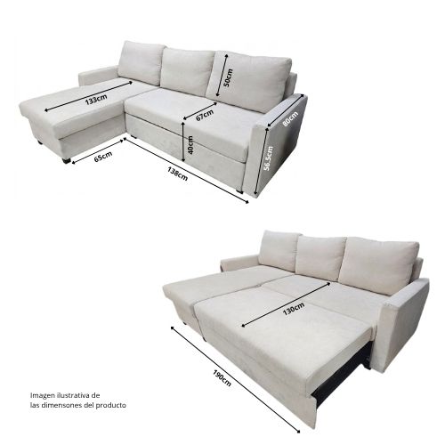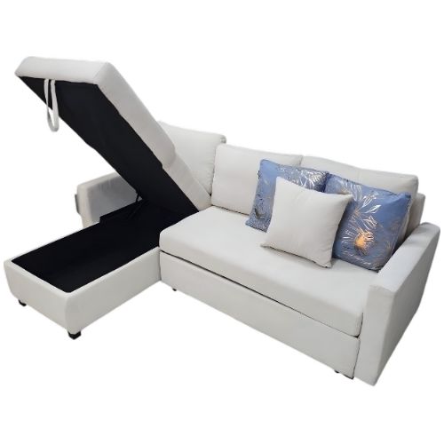 Este sofá para sala de estar con almacenamiento oculto también es una opción que ahorra espacio en hogares pequeños, ya que ofrece toda la comodidad de un sofá y la conveniencia de una cama acogedora. El compartimento de almacenamiento oculto debajo del asiento de la chaise longue proporciona un almacenamiento práctico. Garantiza durabilidad y solidez, mientras su tapizado en tela aporta suavidad y sofisticación a cualquier ambiente. Imagina tus momentos de descanso o reunión familiar disfrutando del máximo confort gracias a su diseño ergonómico y sus generosas dimensiones.