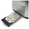 2 ranuras extra anchas: se adaptan fácilmente a bagels, panes y más El sistema de elevación alta para tostar permite alcanzar rebanadas pequeñas con mayor facilidad Selector de tonos para un tostado perfecto, tanda tras tanda Cancelar/apagado automático Bandeja recogemigas deslizable para una limpieza fácil Enrollador de cable para un almacenamiento cómodo