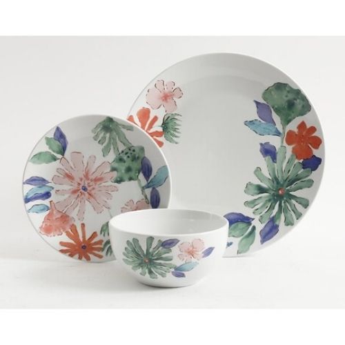 Elegante vajilla de ceramica dazzling lily 12 piezas decorada , ideal para compartir sus mejores momentos en familia servicio para 4 personas incluye: 4 platos triche, 4 platos postre y 4 tazones