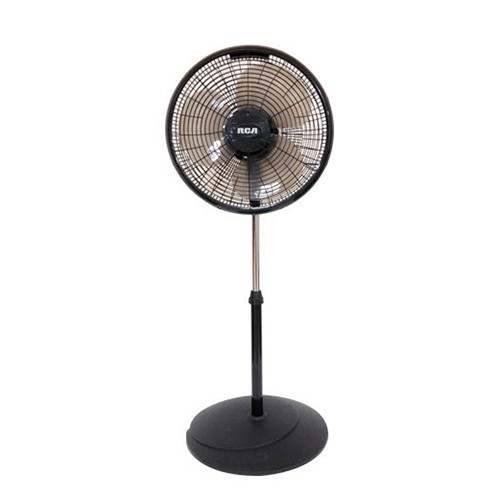 Ventilador de pedestal RCA de 16″ pulgadas color negro con cobertura y aspas plásticas. Cuenta con una potencia de 55 watts/110 voltios y ofrece 3 velocidades.